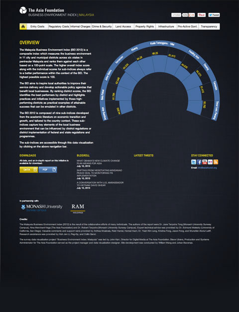 A companion interactive data visualization, launched with the release of a business index report summarizing business environment interactions across Malaysia. The full digital report was distributed and shared via this microsite across social media posts.